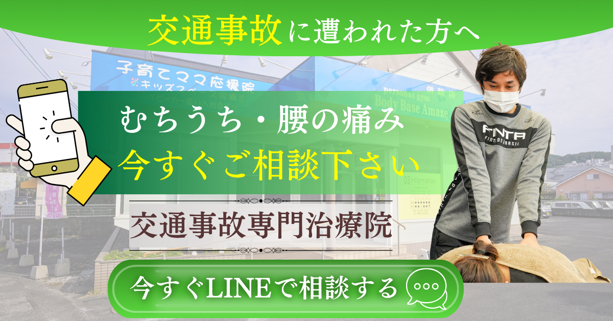 👉どんなに軽い事故でも一度は治療院を受診しましょう。
