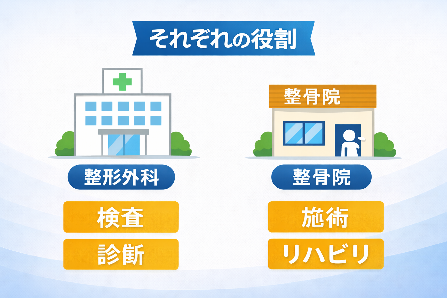 整形外科と整骨院は、それぞれ役割が異なります。