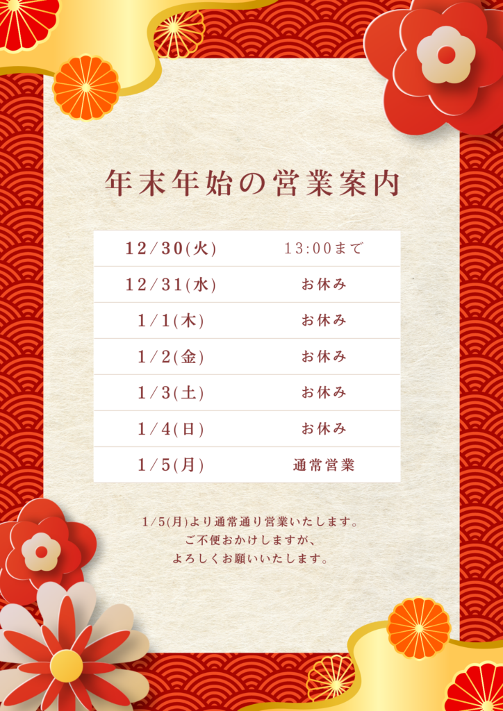 年末年始のお知らせ